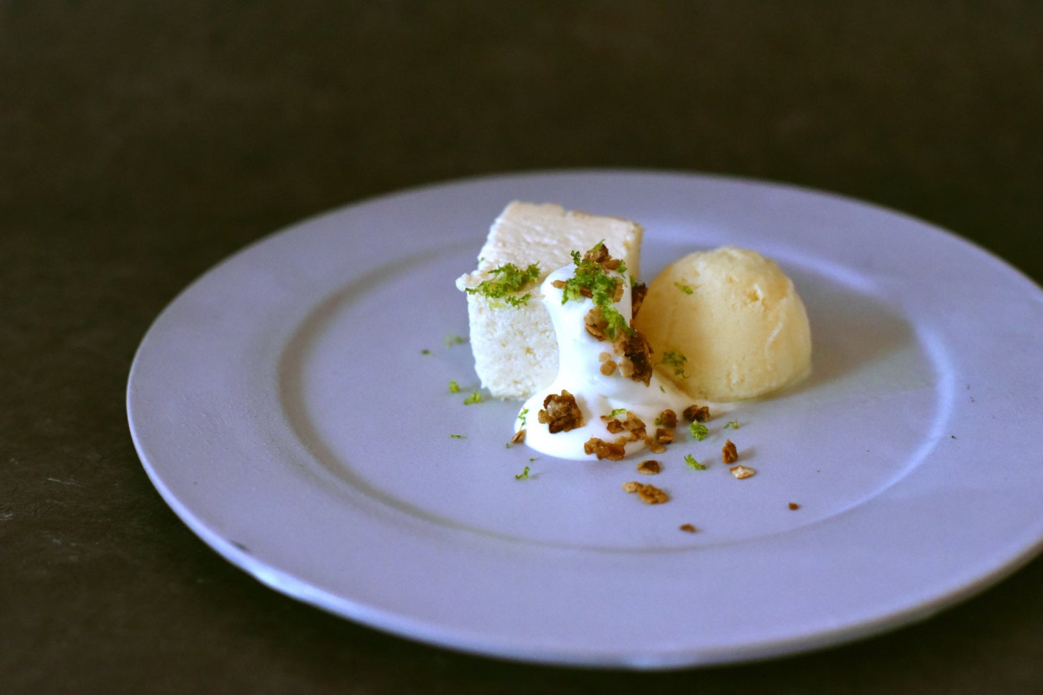 カフェタイム限定デザート「柚子のチーズケーキと蜂蜜柚子ソルベ」
