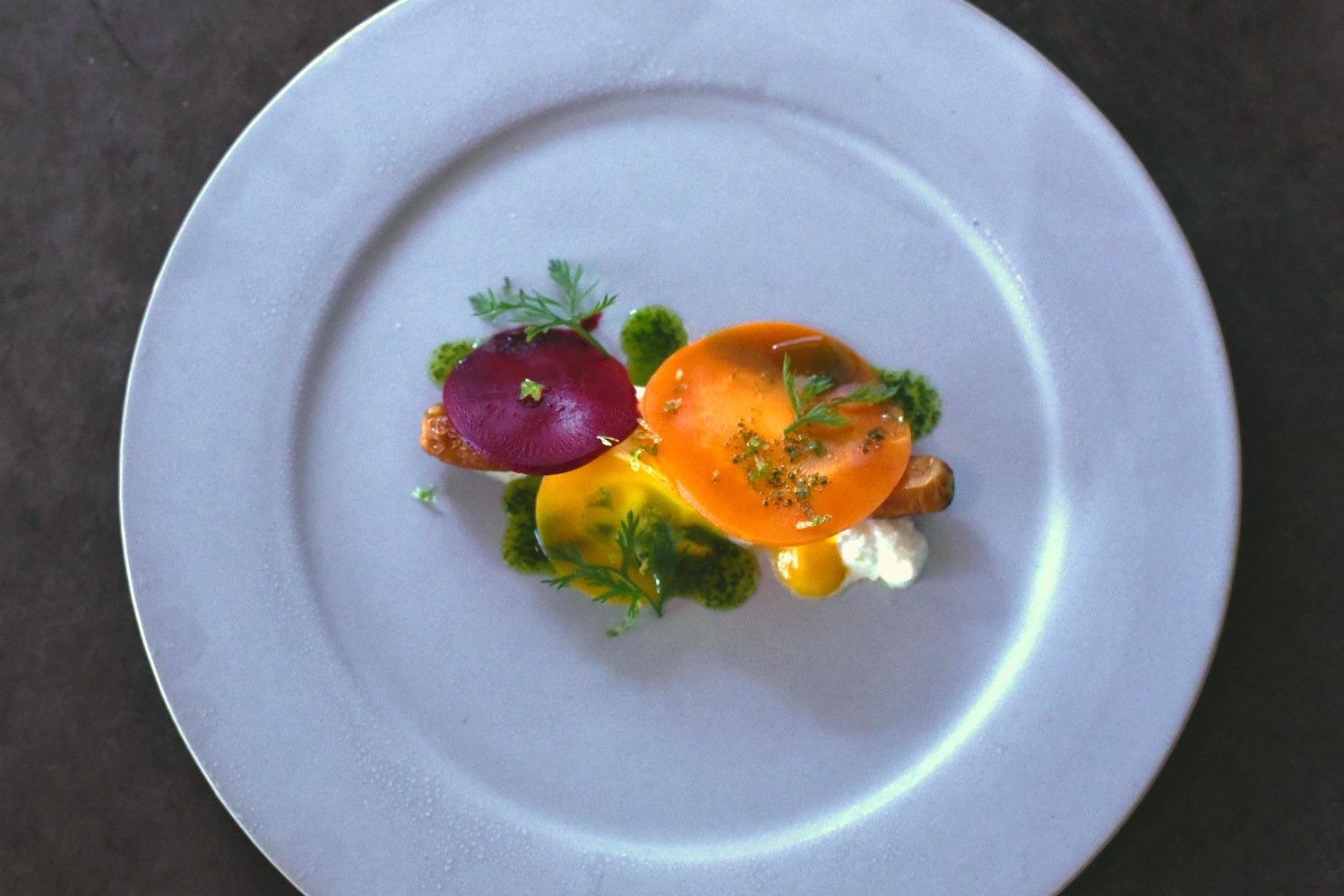 アミューズ「鎌倉人参 ストラッチャテッラチーズ 柚子」