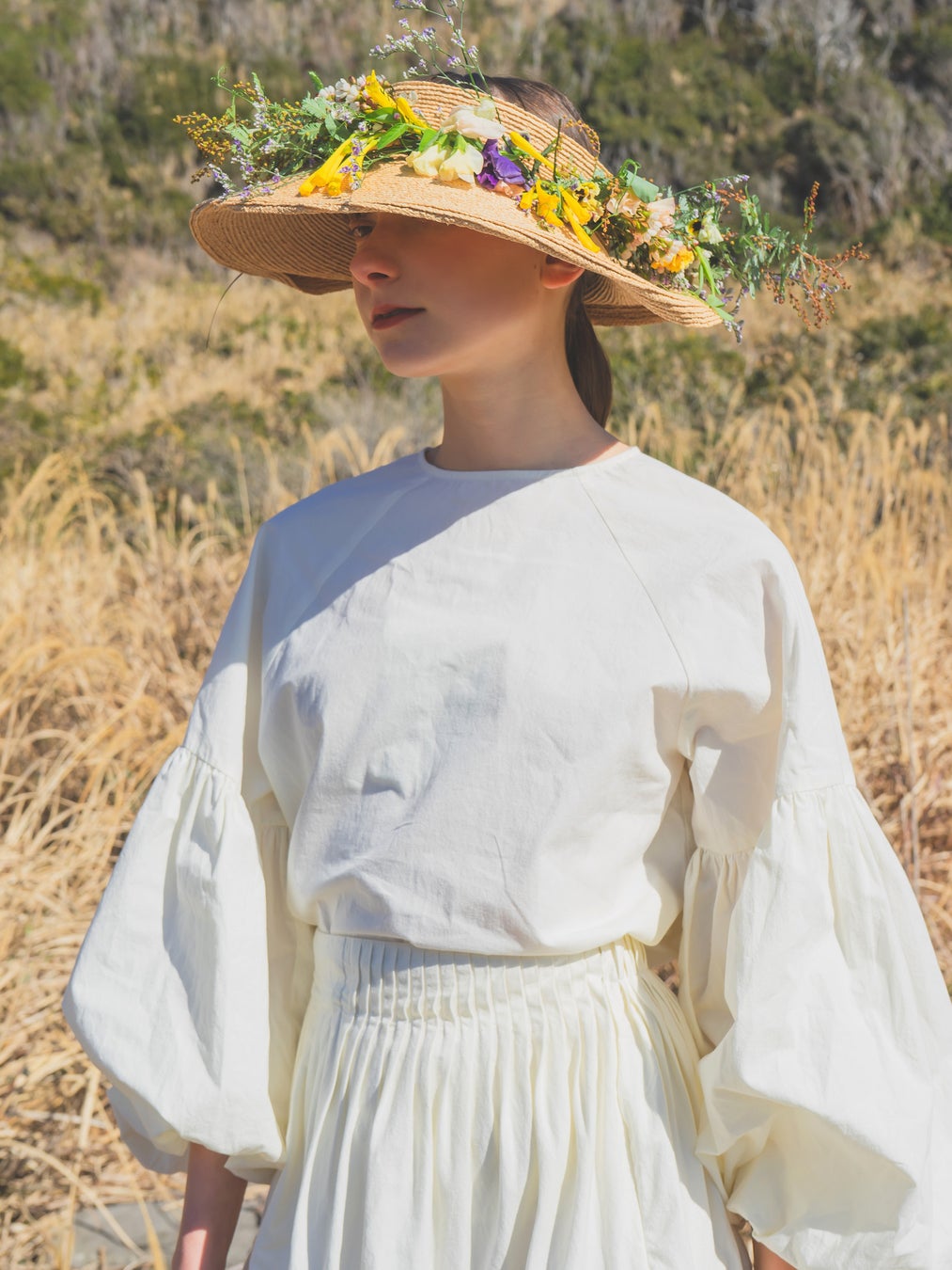 Bud Sleeve Tops ¥15,400 Pin-tuck Volume Skirt ¥18,700