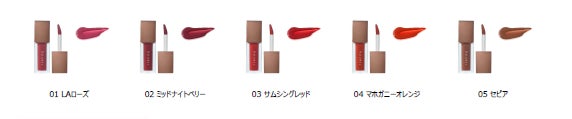 リップティントを軸とする5型のアイテムを