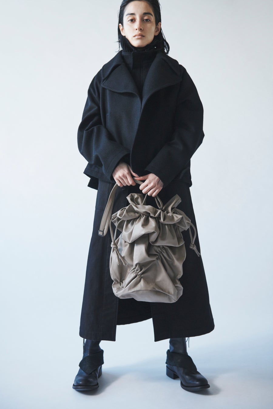 Yohji Yamamotoのギャザードレスからインスピレーションを受けたパイナップルのような「Ananas (アナナス/フランス語でパイナップルの意)」。ギャザーが生むレザーのユニークな表情。秋冬のスタイルに奥行きと、複雑な興味深さを加えます。