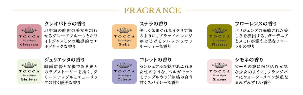 ・ジュリエッタの香り・クレオパトラの香り・フローレンスの香り・コレットの香り・ステラの香り