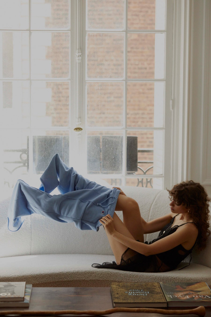 今回のコラボはラウンジウェアをイメージして室内はもちろん外出時も着ていただけるようなデザインにしています。アイテムはこれまでのChampionのオーセンティックなアイテムをベースに、AMERIらしく女性らしいパターンと気分が上がるようなカラーリングを落とし込みました。