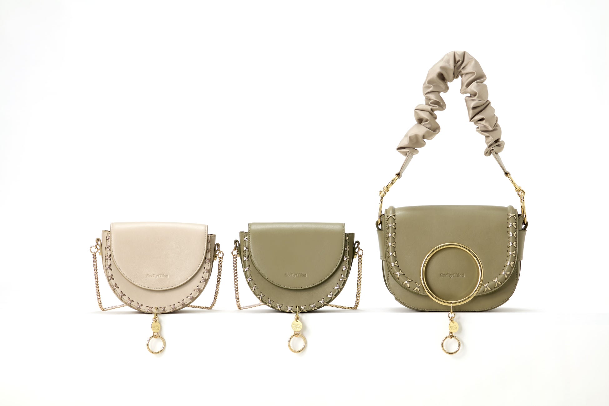 シーバイクロエを代表するバッグのMARAコレクションより、自然をイメージしたポッタリーグリーンに ペールゴールドのクロスステッチが華やかさを添える新色が展開されます。MARAは、丸みのあるシェイプ、 ジュエリーのようにきらめくメダルチャーム、オーバーサイズのサークルモチーフといったブランドのシグニチャー ディテールが詰まったデイリーバッグです。日常使いに最適なクロスボディバッグとクラッチバッグとしても持つことができるイブニングバッグの2型が展開され、クロスボディバッグには、その日のスタイルに合わせて取り付けることのできるサテンファブリックのショートストラップ(別売)も登場します。ラッフルのボリュームとサテンの光沢が エレガントなアクセントをプラスしてくれます。また、ホリデー気分を盛り上げるペールゴールドのクロスステッチには、メゾンの環境に対するビジョンを反映し、レザーワーキンググループ*の認証を得た、環境負荷の少ないレザーを 使用しています。