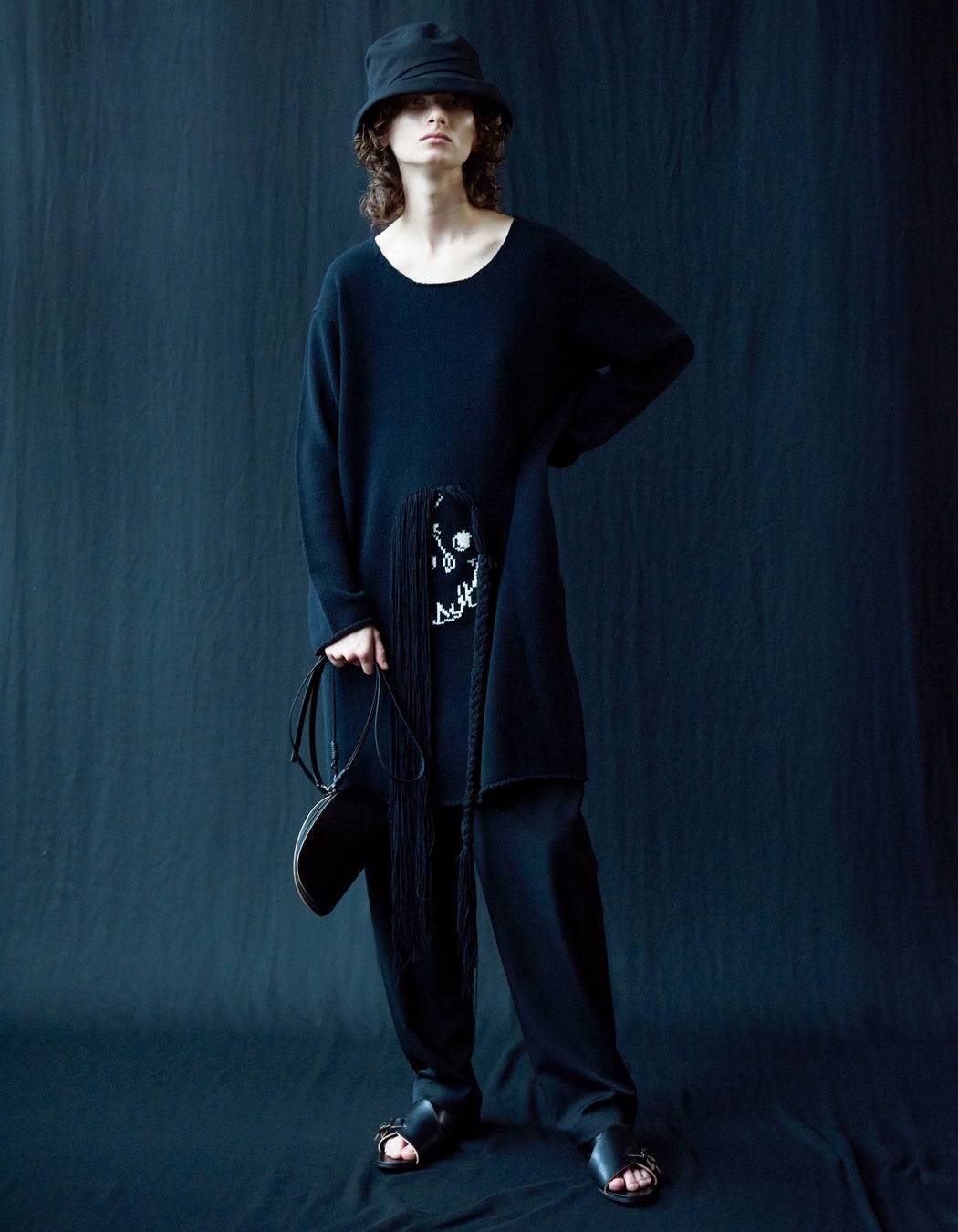 骸骨と三つ編み。プルオーバーニットに毒と遊び心が織り込まれたスプリングニット。
