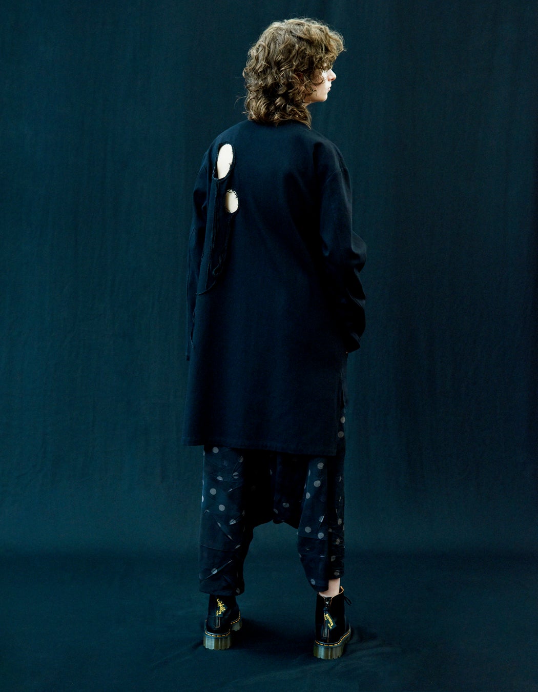 シルエットに抜けをつくる背中の穴開きは、アイコニックなY’sのシグネチャー。