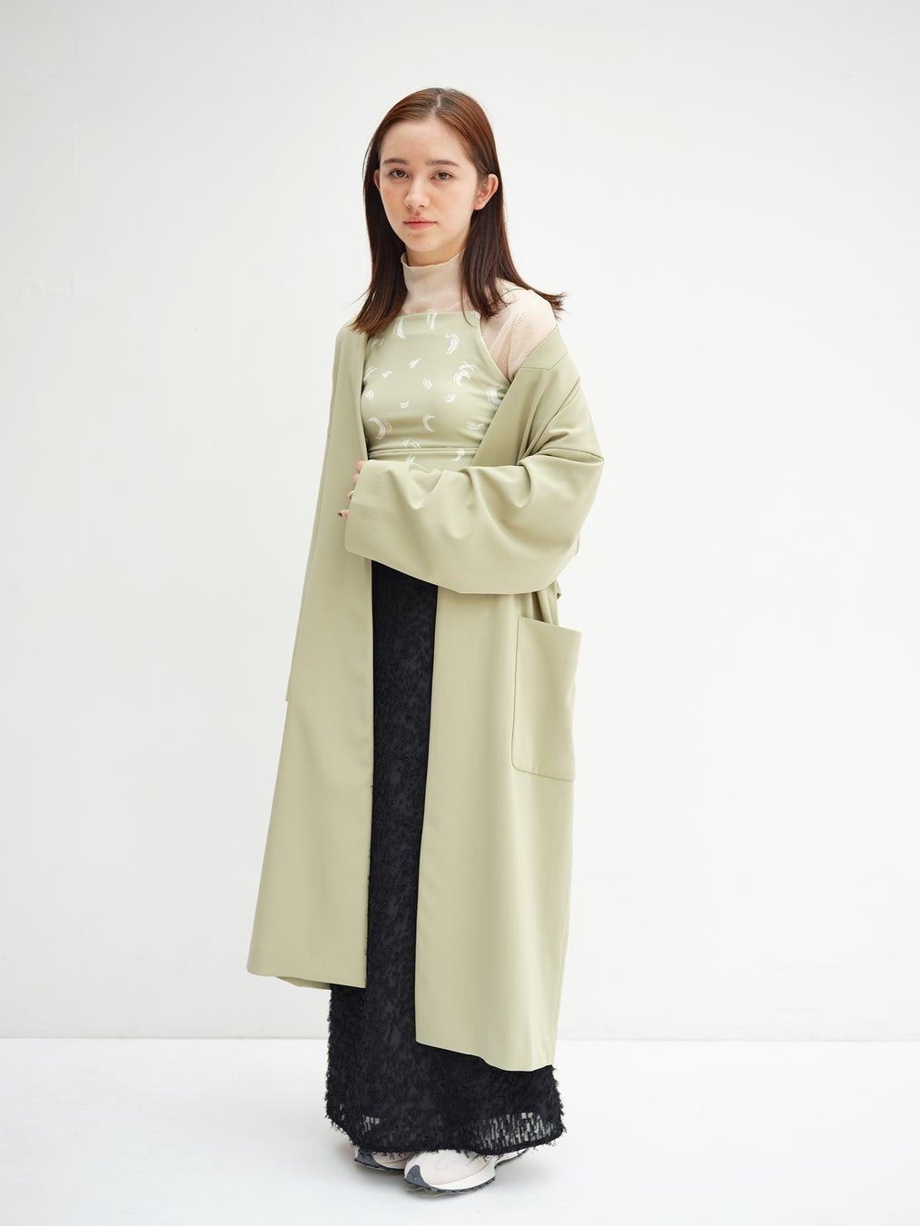 4wayストレッチ素材のモードなノーカラーコートをemmiオリジナルカラーで別注。