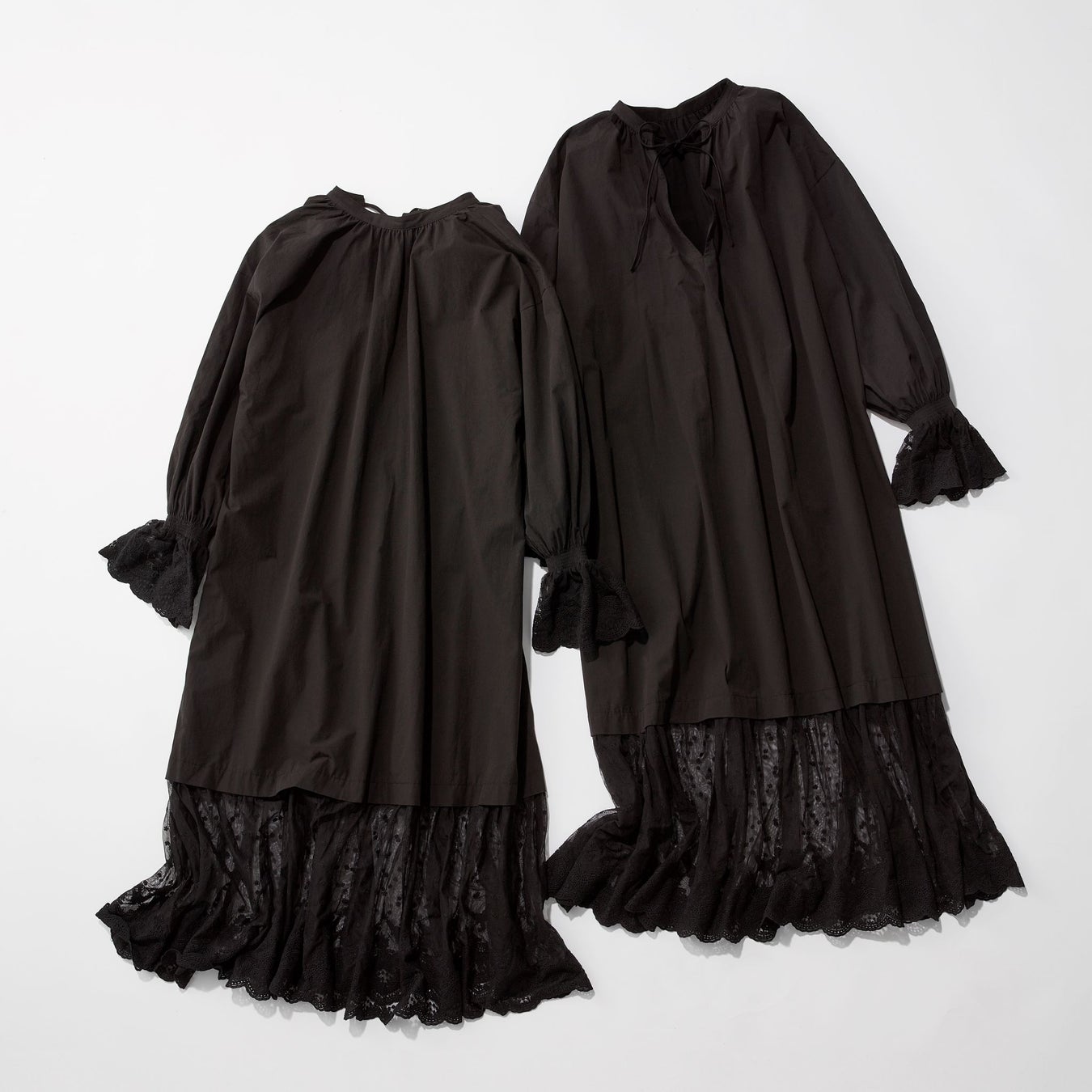 チュールレース使いやスキッパーデザインで一枚でも着映えし存在感のあるワンピース。
