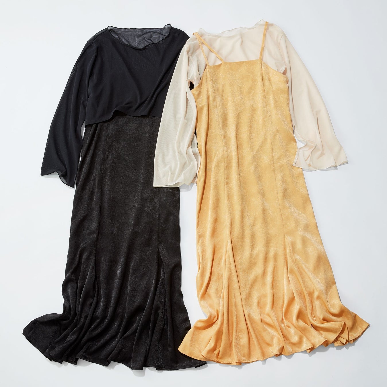 キャミワンピースとシアー素材のインナーがセットになった着回し力抜群のアイテム。