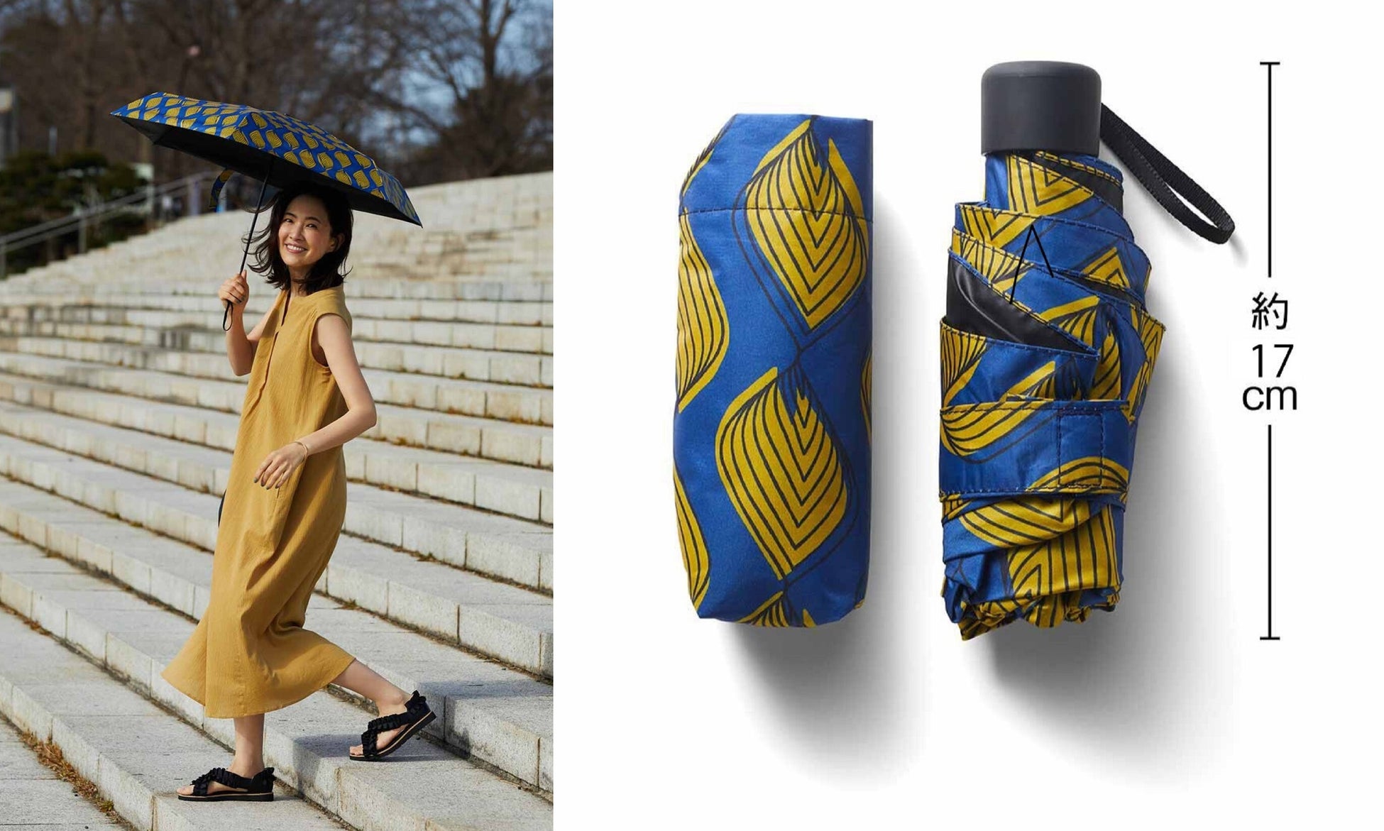 【NEW】リブ イン コンフォート はまじとコラボ 毎日持ち歩けるコンパクトさ! バティック風柄が素敵な晴雨兼用傘