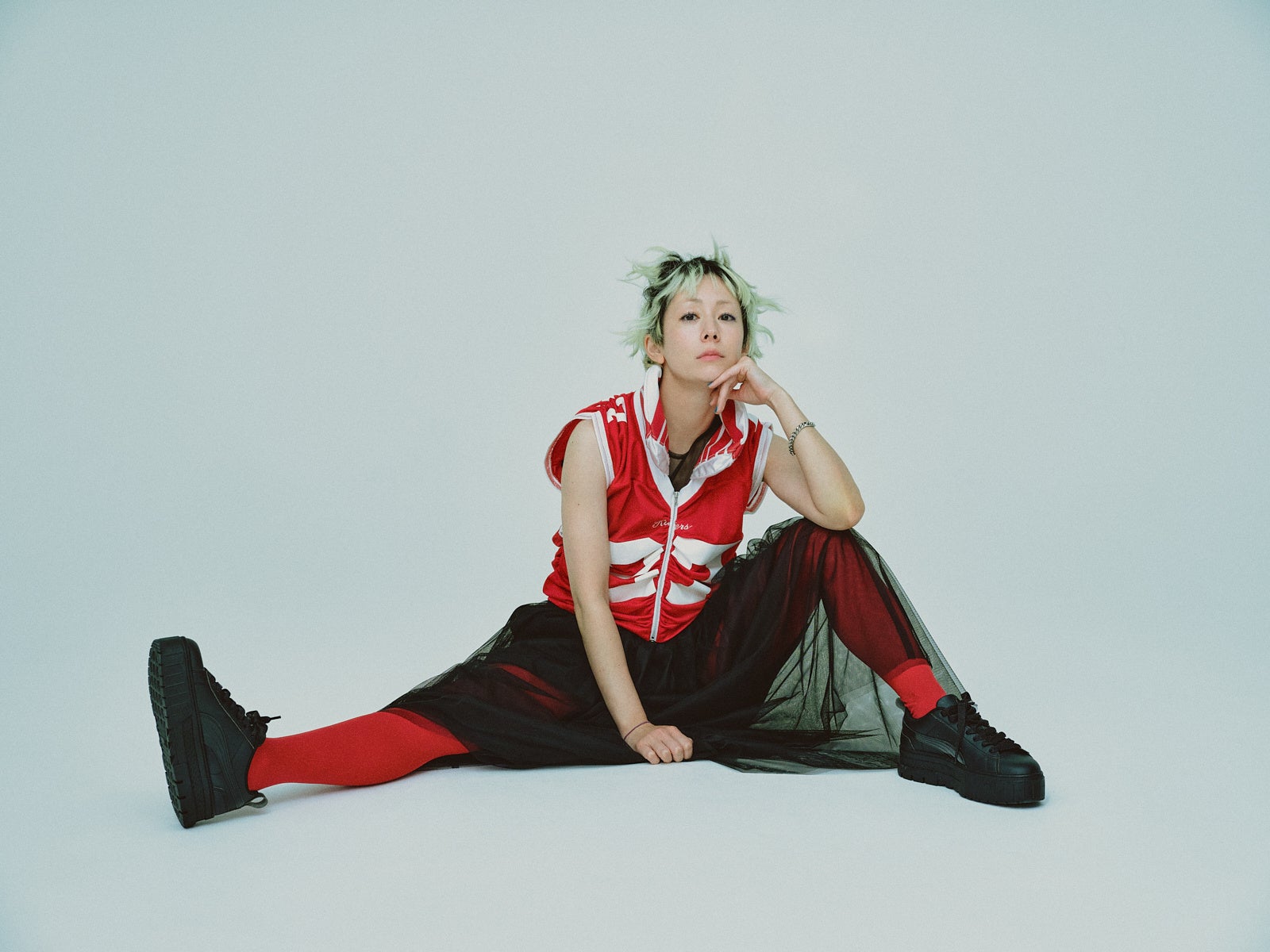 木村カエラが着こなすレッド×ブラックを基調としたレイヤードスタイルにご注目ください。