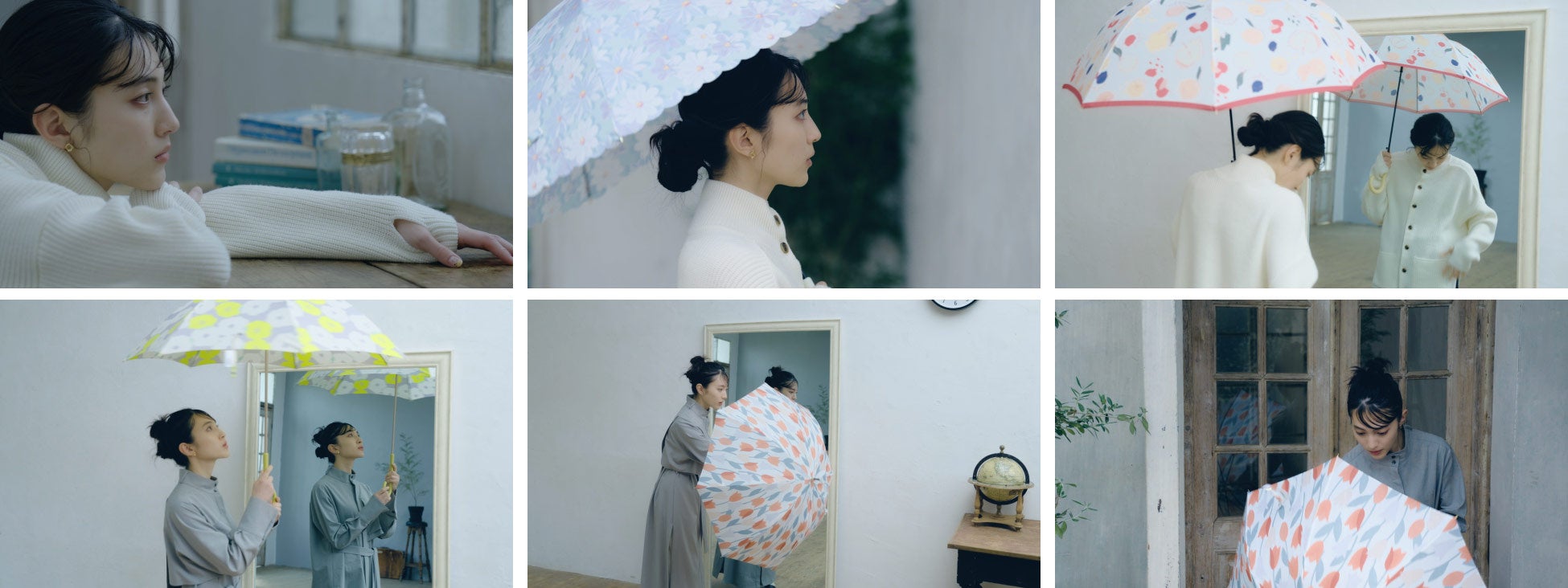 とある休日の朝、しとしとと降り続ける雨を見つめながら浮かない表情を浮かべる久保田さんから始まります。約束の時間に向けて洋服とそれに合う傘を選びますが、なかなかコーディネートが決まらない様子。約束の時間が近付くなか、カジュアルなグレーのワンピースに合わせたのは赤いチューリップが印象的な「ブルーミングチューリップ」。傘も洋服と同じように”ファッションアイテムのひとつ”として、またどんな天気でも”自分らしさを表現するアイテム”として選ぶ楽しみを伝えるストーリーとなっております。